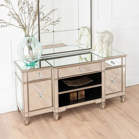 Bari Mirrored Gold Trim 3 Door Large Sideboard - 125cm