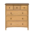 This stylish tall chest is completely assembled and features a unique blend of natural oak and oak veneers enhanced with a natural matte lacquer and walnut colour top. It offers plenty of storage with six full-sized drawers and a wide shape. Perfect for the modern and contemporary bedroom.