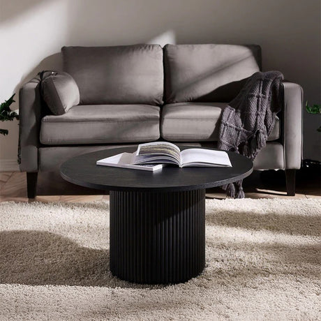 Osaka Smoked Oak Round Coffee Table with Slatted Base