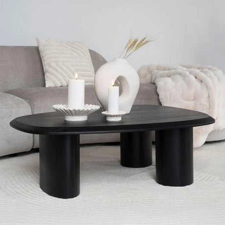 Idaho White Ceramic Top 2 Drawer Coffee Table - Black Fluted Base