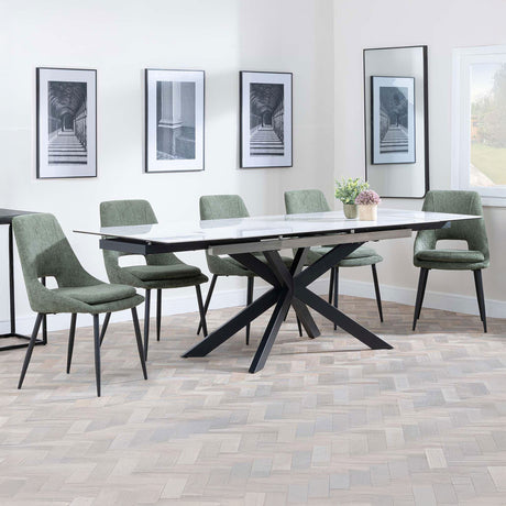 Amber White Ceramic Extending Dining Set - Stansbury Fabric Dining Chair