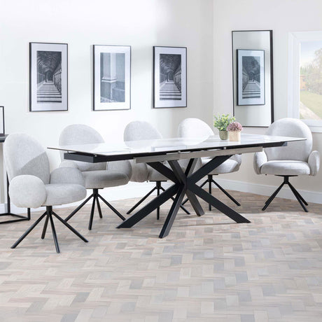 Grace White Ceramic Extending Dining Set - Altavista Fabric Swivel Dining Chair