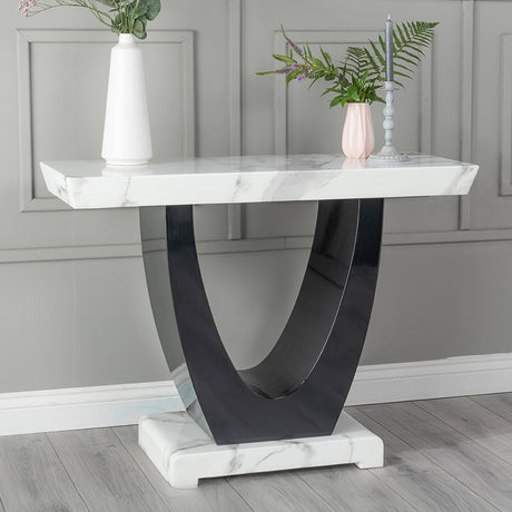 Lucas Black Fluted Console Table with White Marble Top