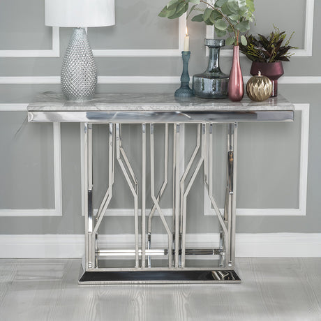 Verona Grey Marble and Chrome Console Table with Artistic Base