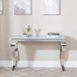 Make a bold statement—add the Matera Grey Marble and Chrome Console Table to your home today.