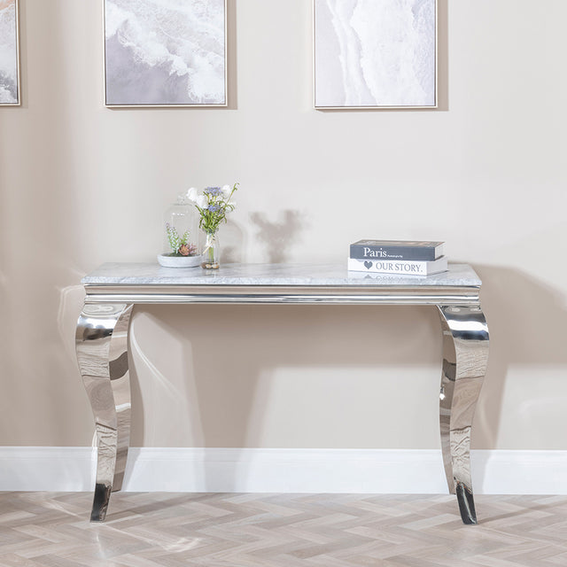 Buy Matera Grey Marble and Chrome Console Table | UD UK – Urban Deco UK