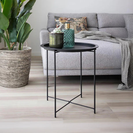 Lecco Gold Metal Round Large Side Table with Marble Base