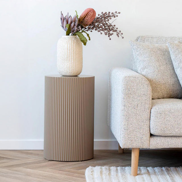 Buy Farense Beige Fluted Round Side Table | UD UK – Urban Deco UK