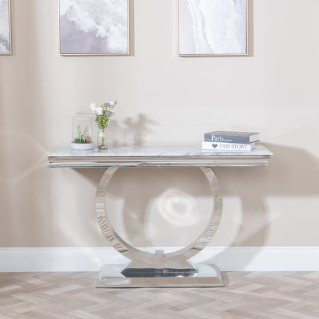 Seattle Grey Marble and Chrome Console Table with Ring Base