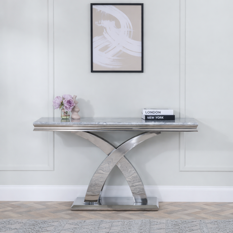Palermo Grey Marble and Chrome Console Table with X-Cross Base