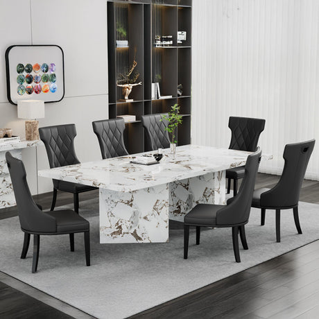 Venice Dining Set - 6 Seater - 160cm - Cream Marble - Cadiz Dining Chairs - Black Leather