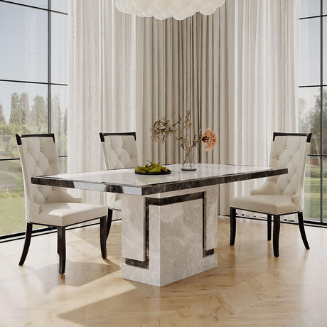 Venice Dining Set - 6 Seater - 160cm - Cream Marble - Cadiz Dining Chairs - White Leather