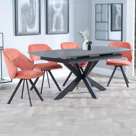 Charlotte Grey Ceramic Extending Dining Set - Burano Velvet Fabric Swivel Dining Chair