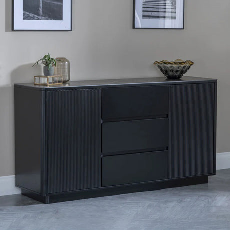 Stanmore Black Ceramic 2 Door Fluted Large Sideboard - 160cm