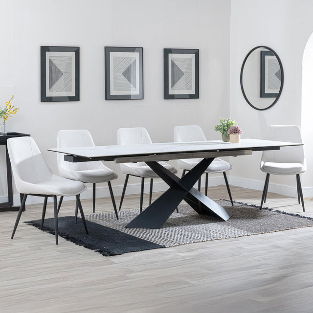 Amber White Ceramic Extending Dining Set - Rovereto Fabric Dining Chair