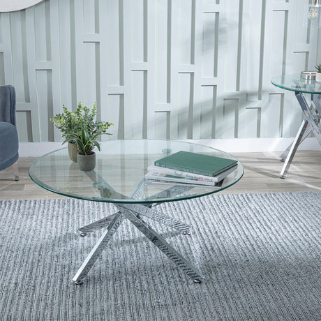 Ashley Grey Glass and Chrome Metal 4 Seater Round Dining Set - 4 Rovigo Fabric Dining Chairs
