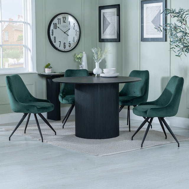 Buy Bern Fluted Black 4 Seater Round Dining Set - 4 Arctic Green Velvet Fabric Swivel Dining Chair | UD UK – Urban Deco UK