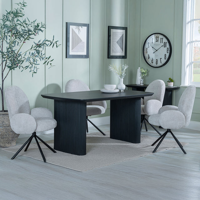Charlton Fluted Black Dining Set - Altavista Fabric Swivel Dining Chair