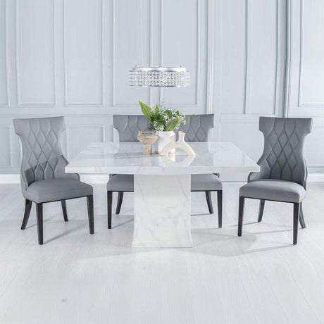 Genoa 140Cm Square White Marble Dining Set - Parish Faux Leather Chair