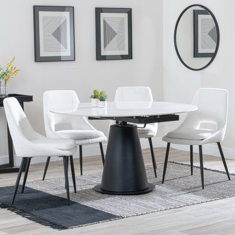 Madison White Ceramic 4 Seater Round Extending Dining Set - Killen Boucle Fabric Dining Chair