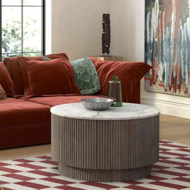 Michigan Grey Round Fluted Coffee Table with White Marble Top
