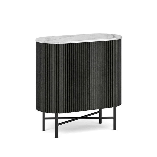 Lucas Black 65cm Mini 2 Door Fluted Curved Sideboard with White Marble Top