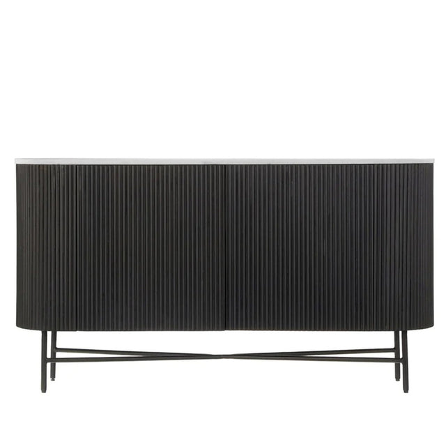Lucas Black 150cm Medium 2 Door Fluted Curved Sideboard with White Marble Top