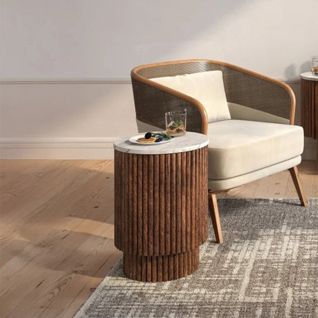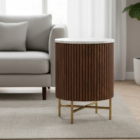 Nevada Round Fluted Side Table with White Marble Top