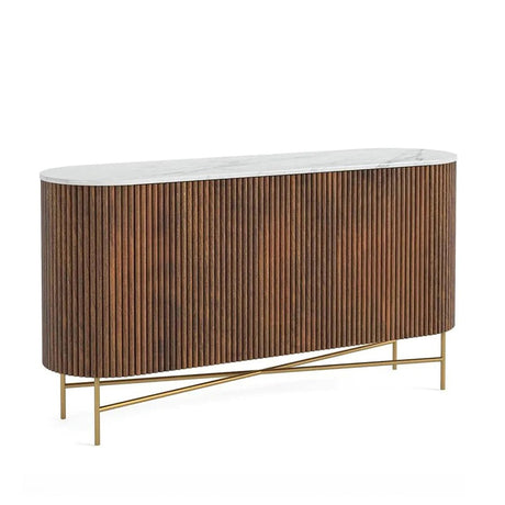 Nevada 150cm Medium 2 Door Fluted Curved Sideboard with White Marble Top