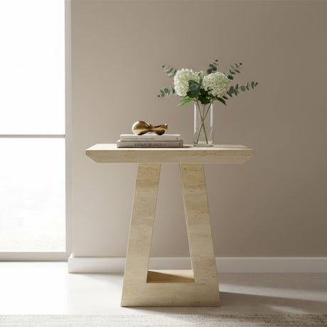 Pisa Travertine Beige Engineered Marble Square Side Table