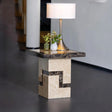 Sicily Cream Marble Square Side Table with Pedestal Base