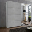 This wardrobe offers plenty of storage space with 2 shelves and 2 doors. Made with MDF, the wardrobe is finished in a concrete grey colour and features mirror doors. Perfect for any bedroom or hallway, the flat packed wardrobe is easy to assemble and is of German-made quality.