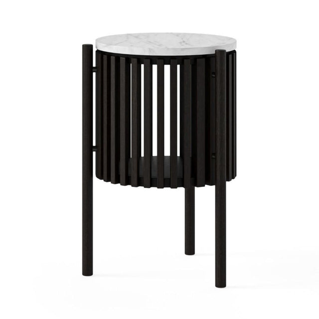 Soho Black 1 Door Slatted Story Round Side Table - White Marble Top
